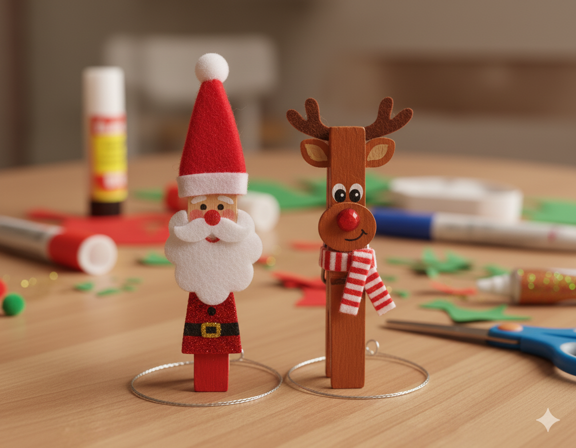 Taller infantil y familiar de adornos para el árbol. Decora tus pinzas con tus elementos favoritos y... ¡cuélgalas en tu árbol de Navidad!